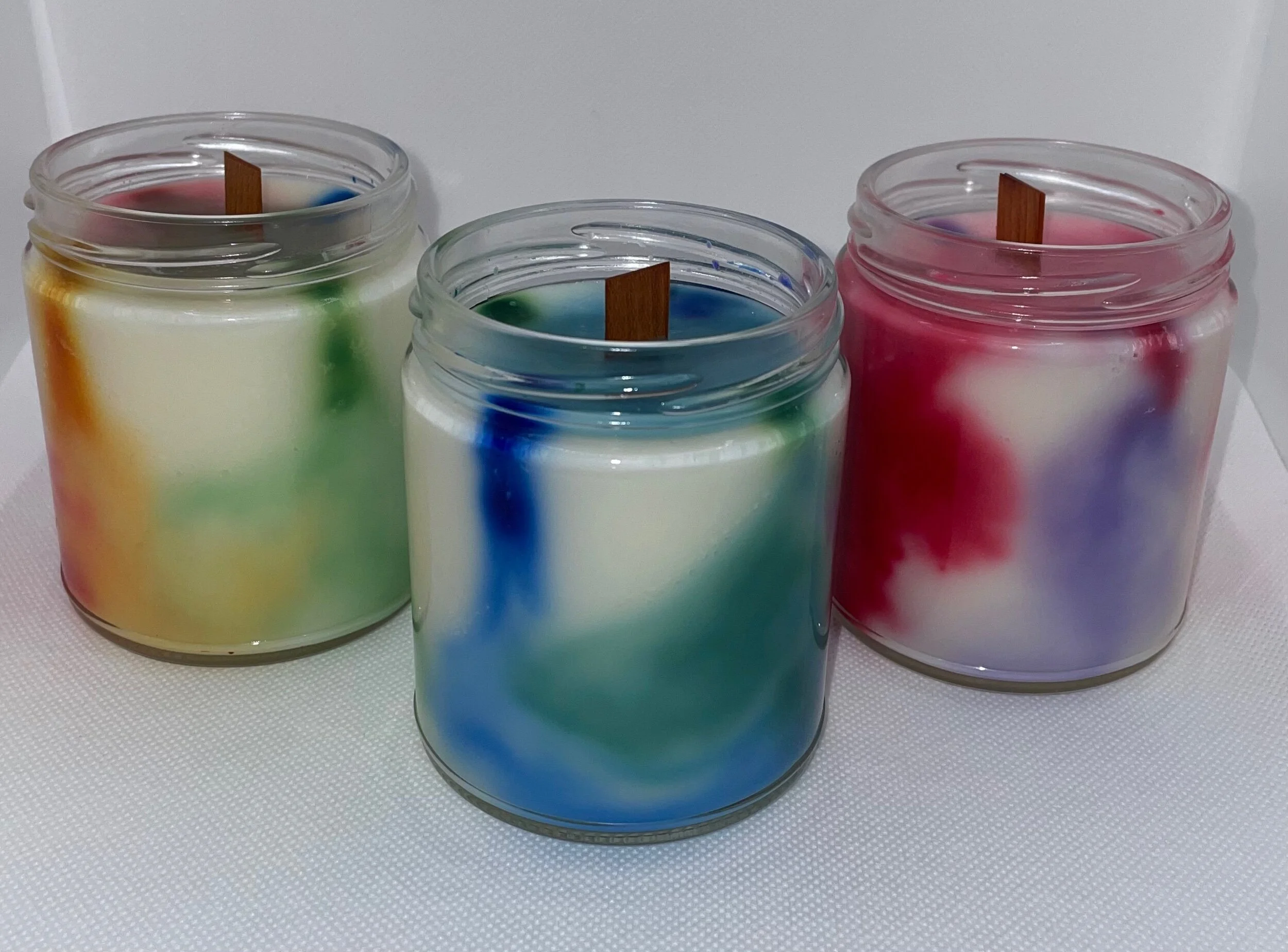All of these candles are made with Scented Essential Oils and natural Soy wax. Soy wax has no toxic chemical so when lit you can enjoy with no worries. The wood wicks do not release black smoke or soot. The relaxing sound of the crackling wood with is also very pleasing. You pick the color and the scent of your candle. More decorative Candles will be add so please continue to check this website.